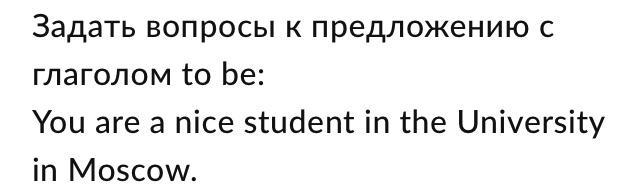 Предложение с глаголом to be с вопросом строиться следующим образом: Are you nice student in the University in Moscow