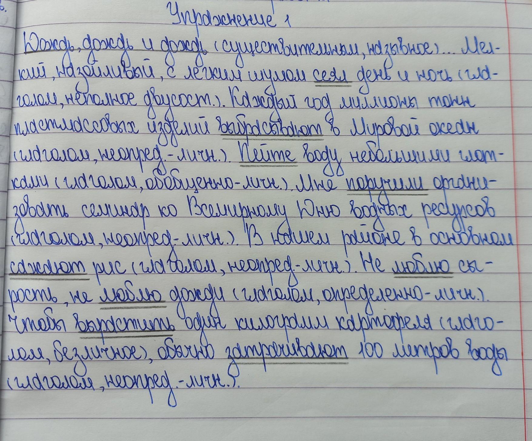 2. Спишите предложения. Обозначьте, чем выражен главный предложения? Определите, типы односоставных предложений. 1. Дождь, дождь и дождь... Мелкий, назойливый, с легким шумом сеял день и ночь. (В.М.Шукшин) 2. Каждый год миллионы тонн пластмассовых изделий выбрасывают в Мировой океан. 3. Пейте воду небольшими глотками. 4. Мне поручили организовать . семинар ко Всемирному Дню водных ресурсов. 5. В нашем районе в основном сажают рис. 6. Не люблю сырость, не люблю дожди. 7. Чтобы вырастить один килограмм картофеля, обычно затрачивают 100 литров воды.