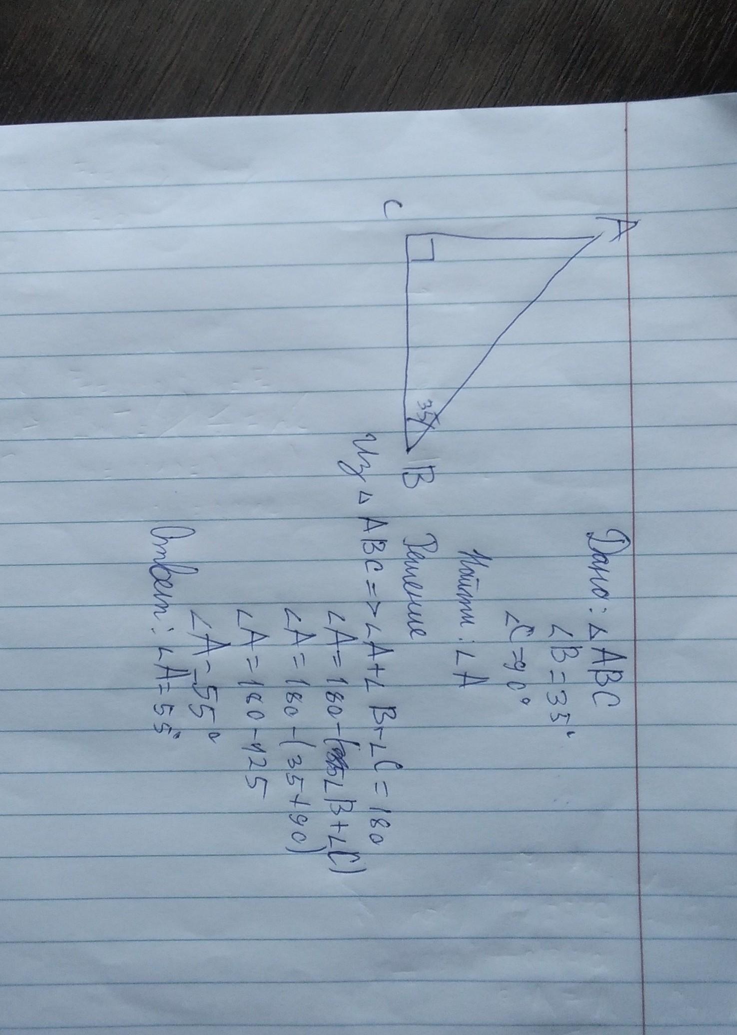 Угол А = 180 - (90 + 35) = 180 - 125 = 55°
