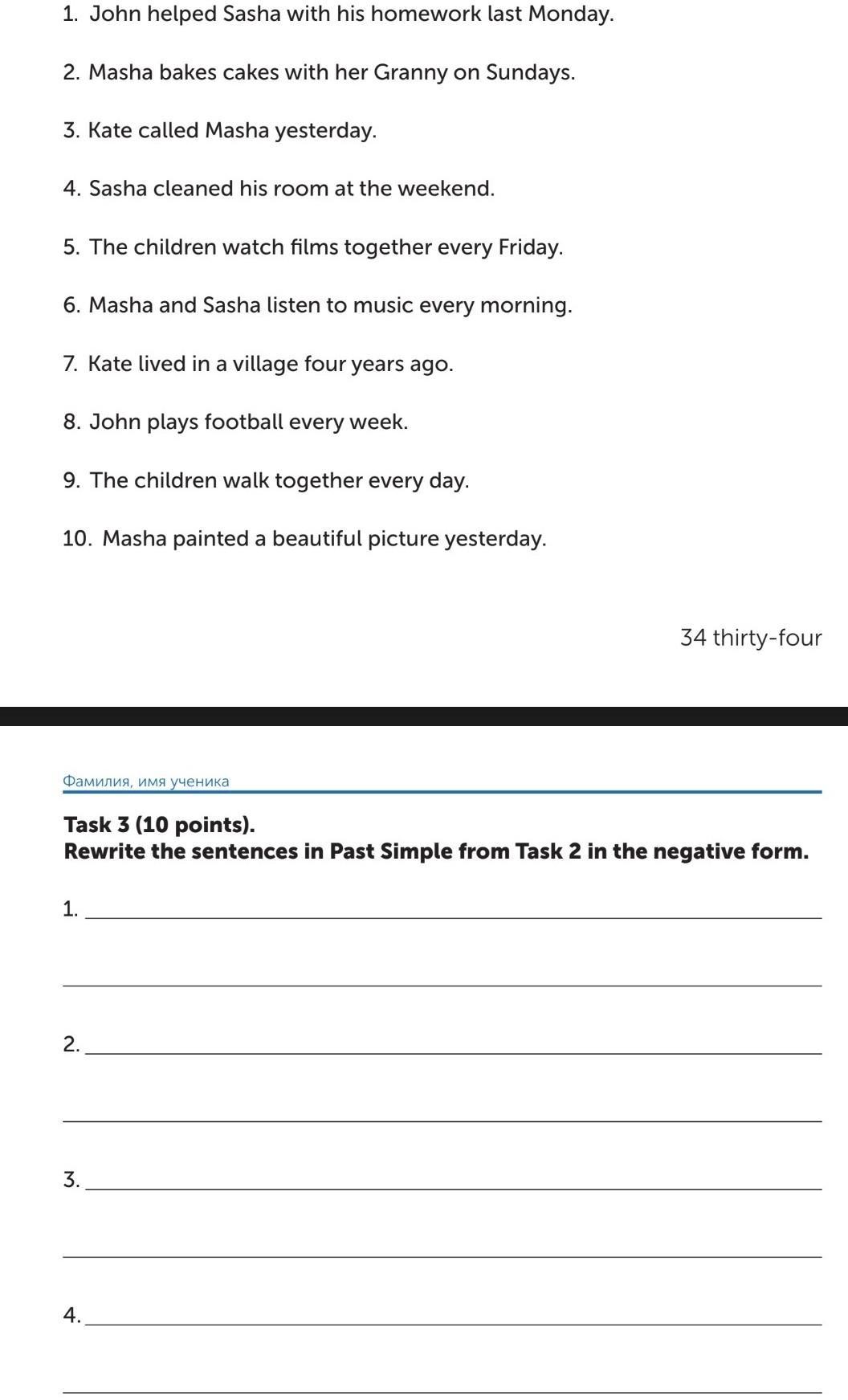 3 Kate doesn't call Masha yesterday.