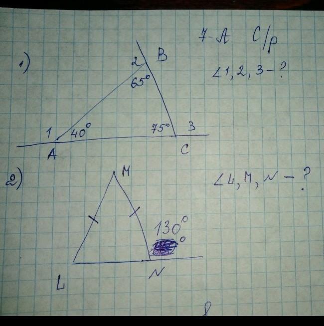 Угол L = Углу N = 50 (т.к. треугольник равнобедренный, следовательно углы при основании равны)