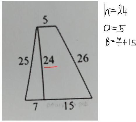 5 25 26 7 15 найдите площадь трапеции изображеная на рисунке