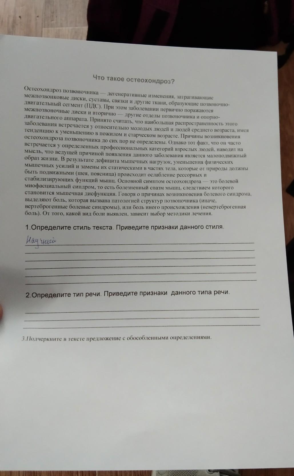 2. Описание. Весь текст описывает одно и то же, перечисляет признаки в данном случае остеохондроза, как бы отвечает на вопрос "какой?"