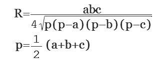 R=abc/(4*корень(p*(p-a)*(p-b)*(p-c))=