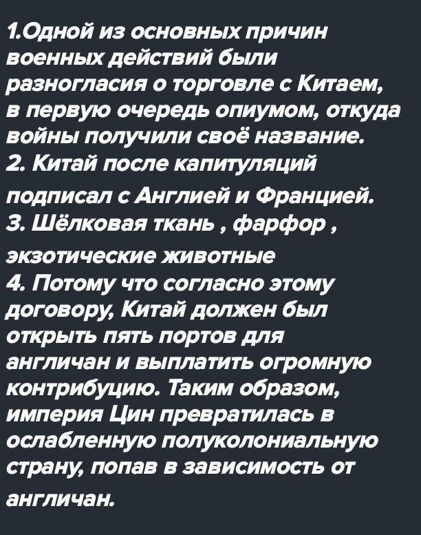 Задание 3 Дополите предложение: 1. Почему войны англичан с Китаем называются опиумным:? 2. Какие страны подписали Тяньзинское соглашение,уууууу 3. Какие китайские товары были популярны в Европе,у, 4. ПОчкму Нанкинский договор называют несправкедливым, неравноправным по отношению к Китаю:,,,,,,,,,,,,,,,,,,,,,