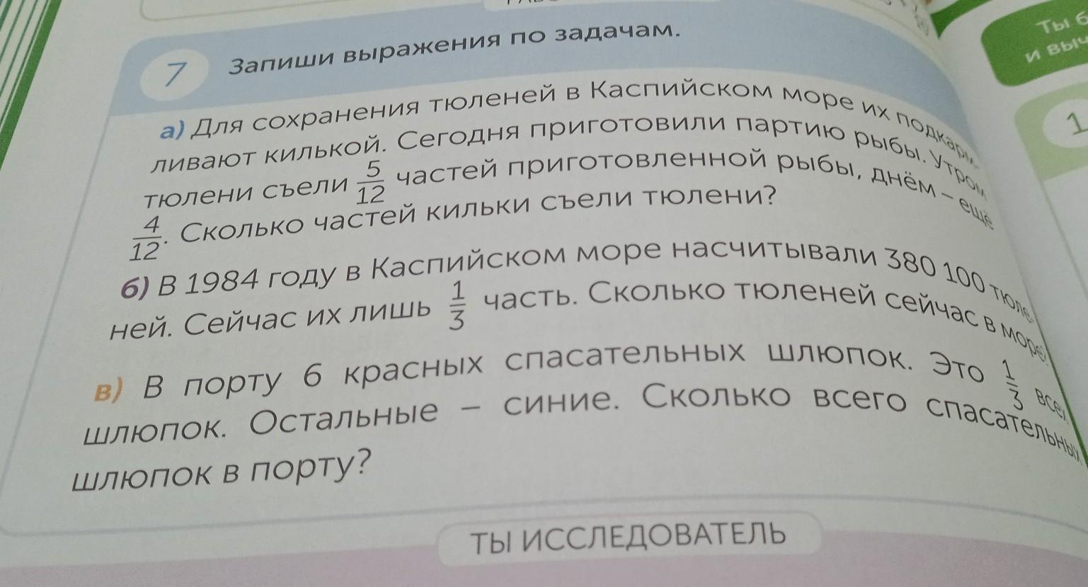 а) 5/12 + 4/12 = 9/12 = 3/4 части кильки съели тюлени
