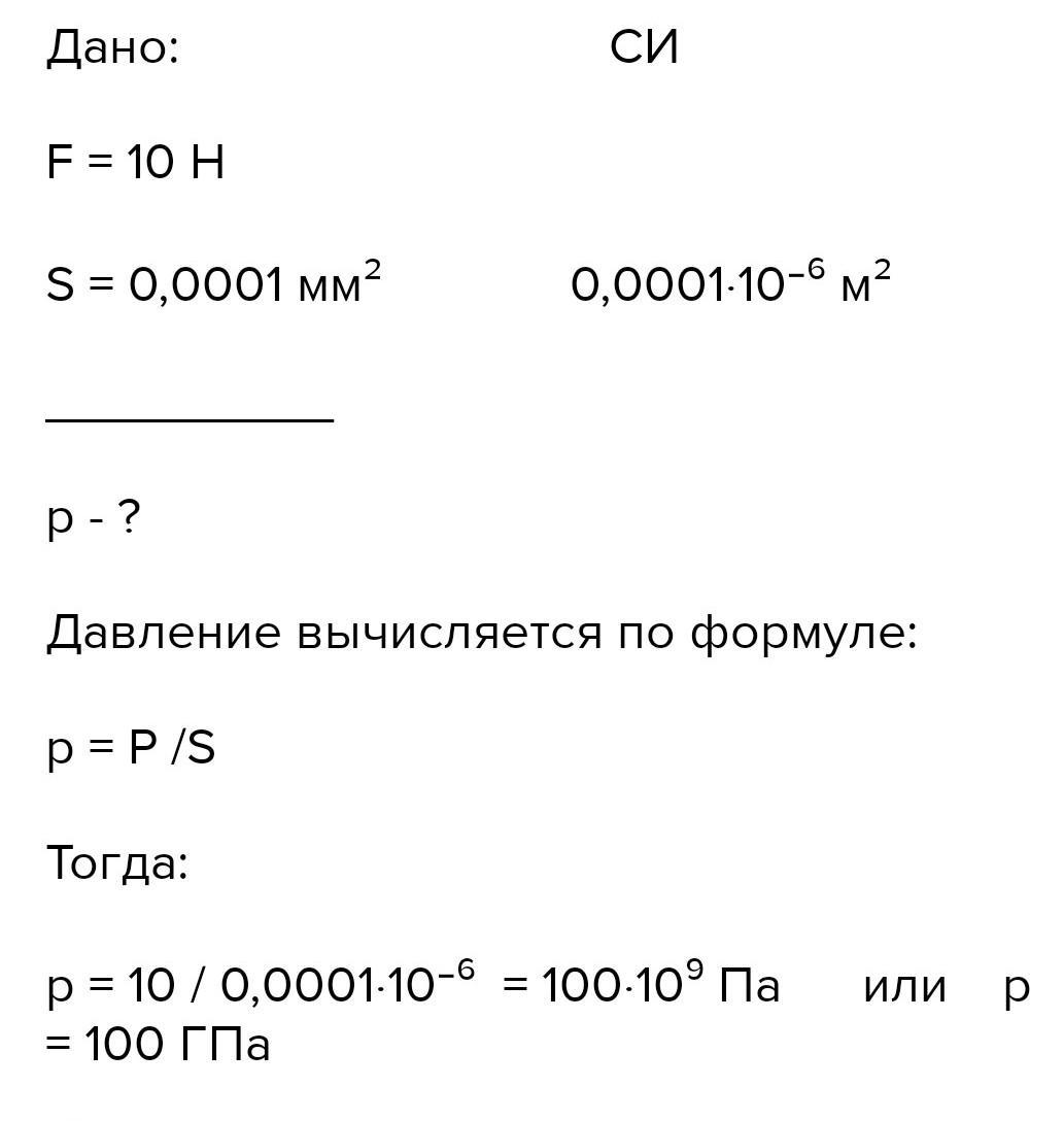Какое давление производит швейная игла, если площадь её острия 0,001 кв.мм, а сила нажатия на иглу 0,4 Н
