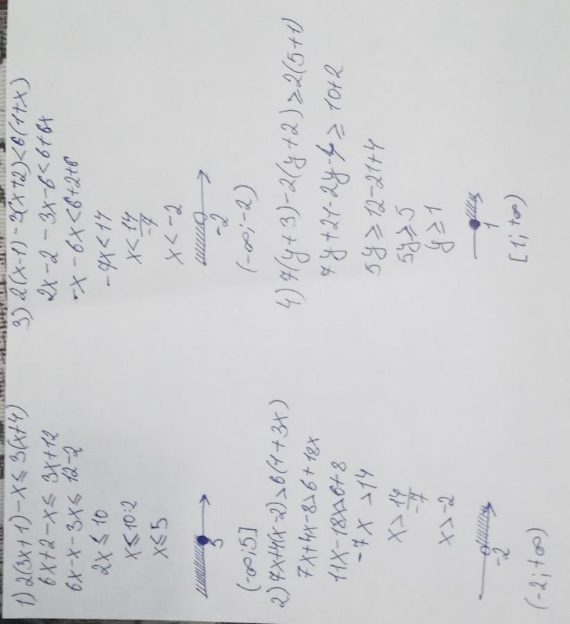 Решите неравенства и запишите луч:1) 2(3x+1)-x ≤ 3(x+4)