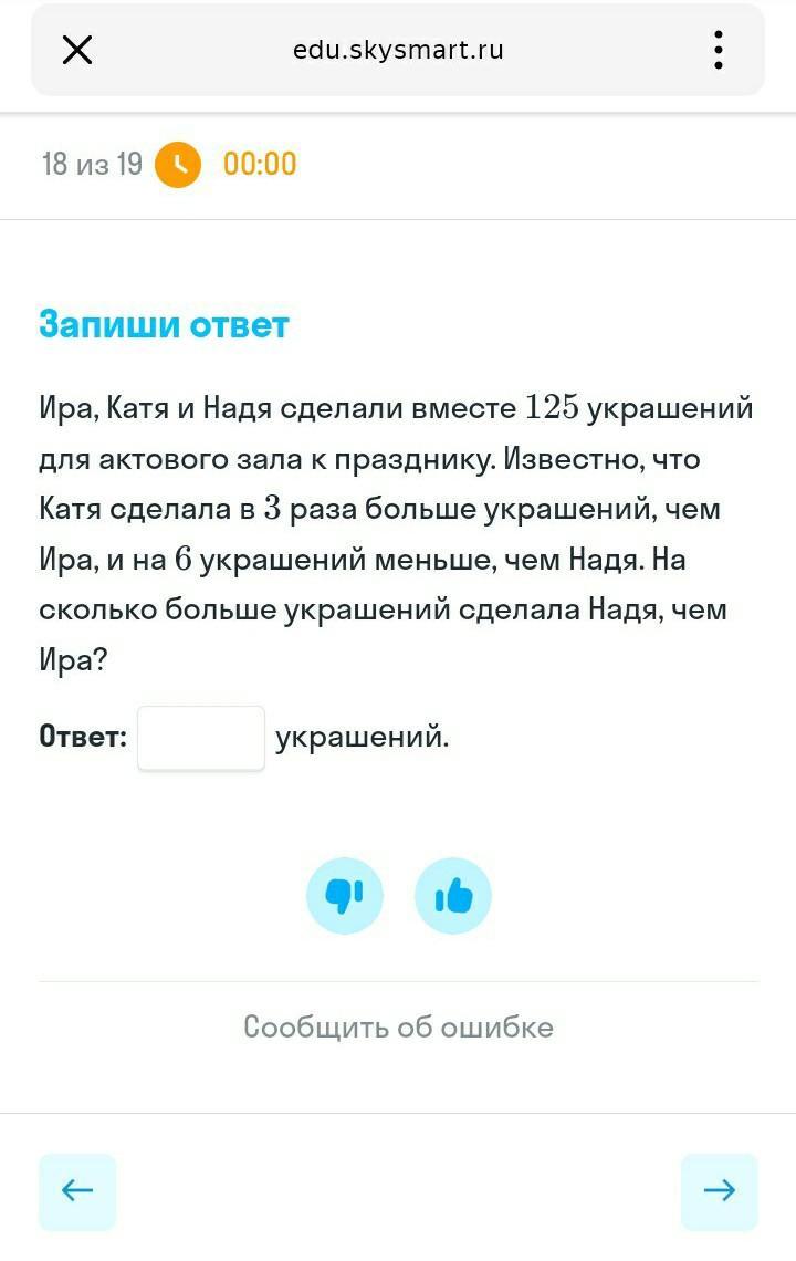 пусть ира сделала х украшений тогда катя сделала 3х а надя 3х+6 тогда составим и решим уравнение