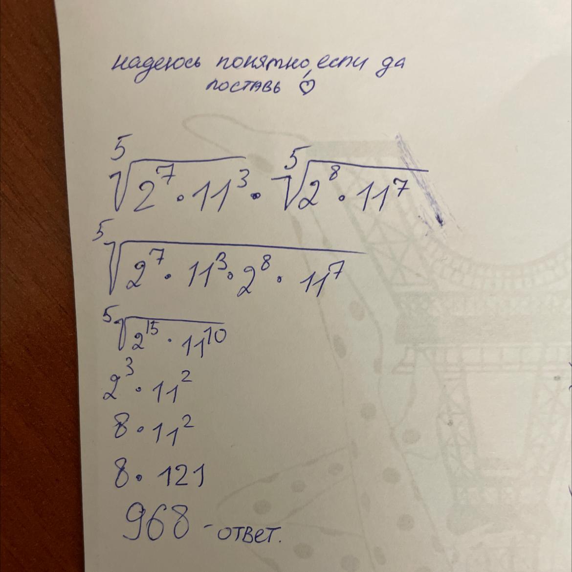 ⁵√(2⁷ × 11³) × ⁵√(2⁸ × 11⁷) =