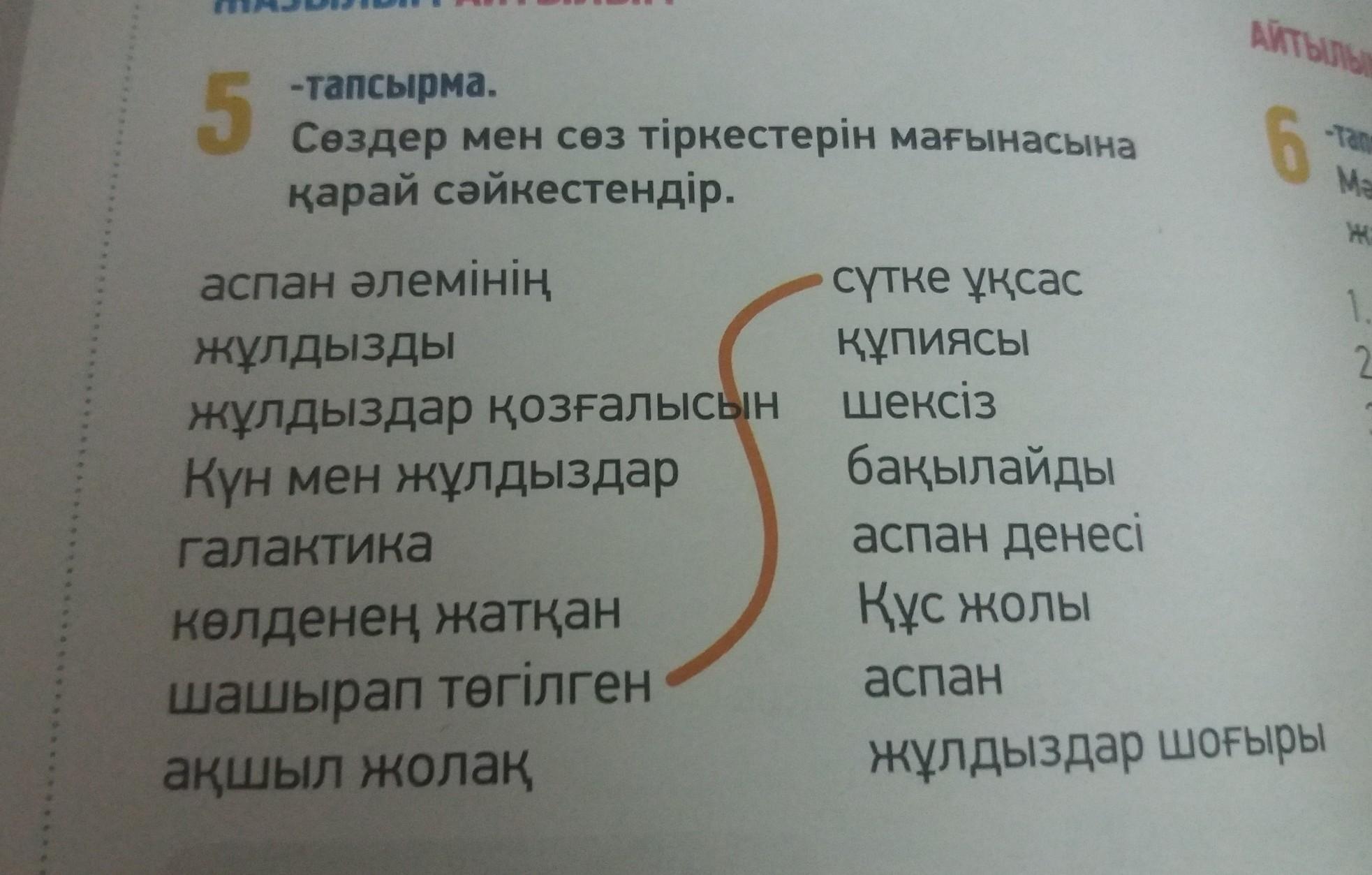 5 тапсырма Сөздер мен сөз тіркестерін мағынасына қарай сәйкестендір