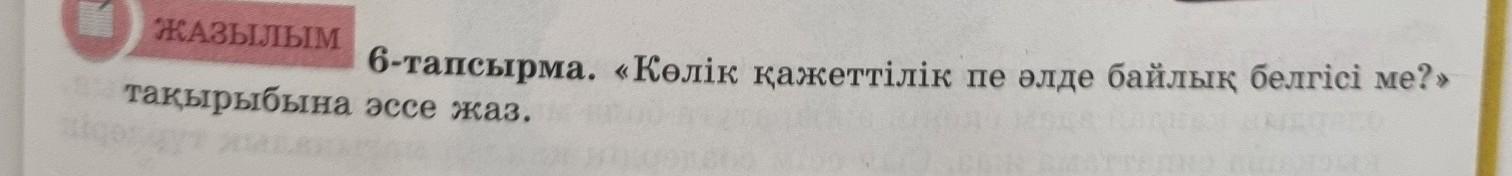 ЖАЗЫЛЫМ 6-тапсырма. «Көлік қажеттілік пе әлде байлық белгісі ме?» тақырыбына эссе жаз.