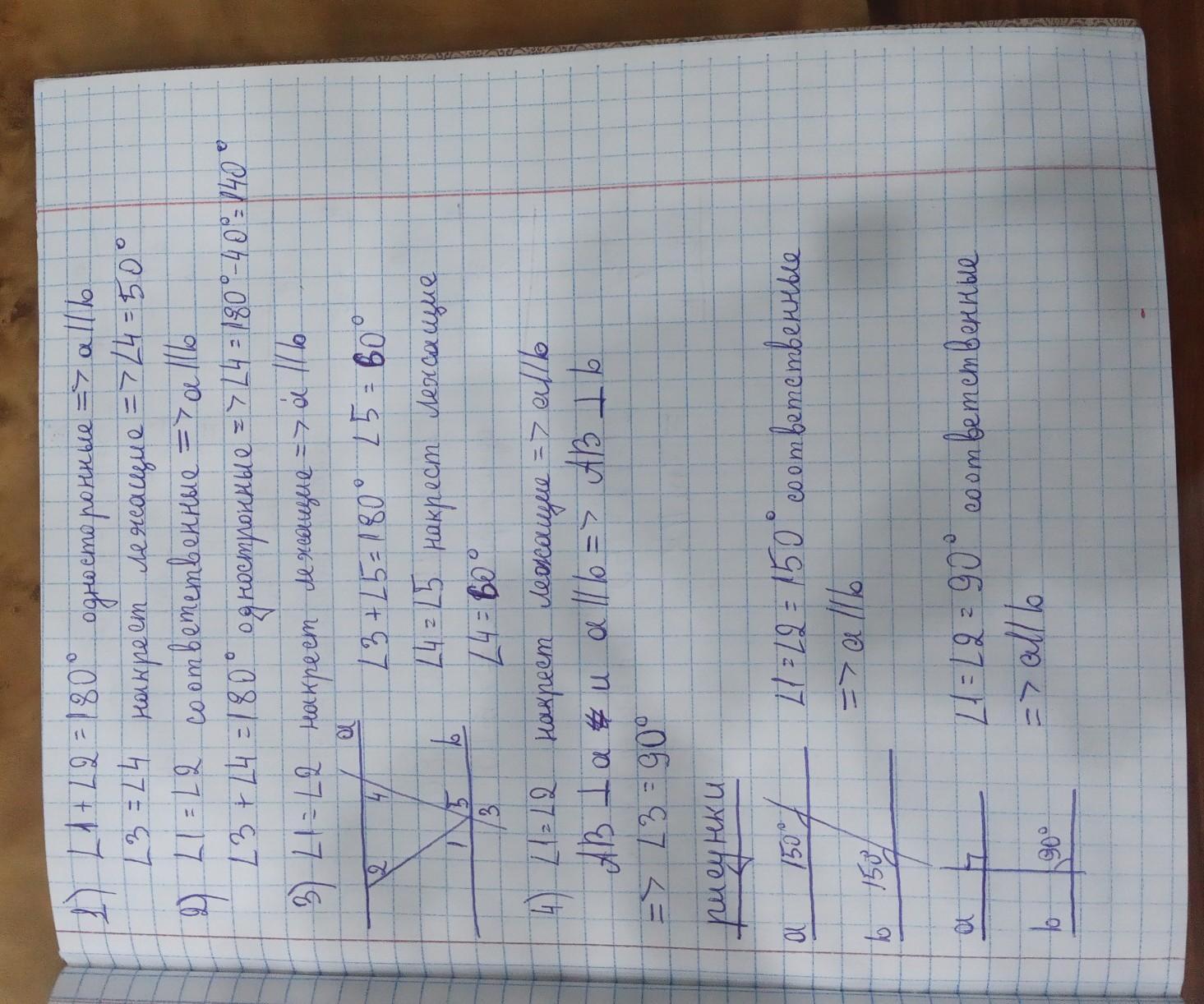 3) квадратик это прямой угол. соответственные следовательно они. соответственные углы равны. если прямая перпендикулярна к одной из параллельных прямых, следовательно она перепендикулчрна и к другой