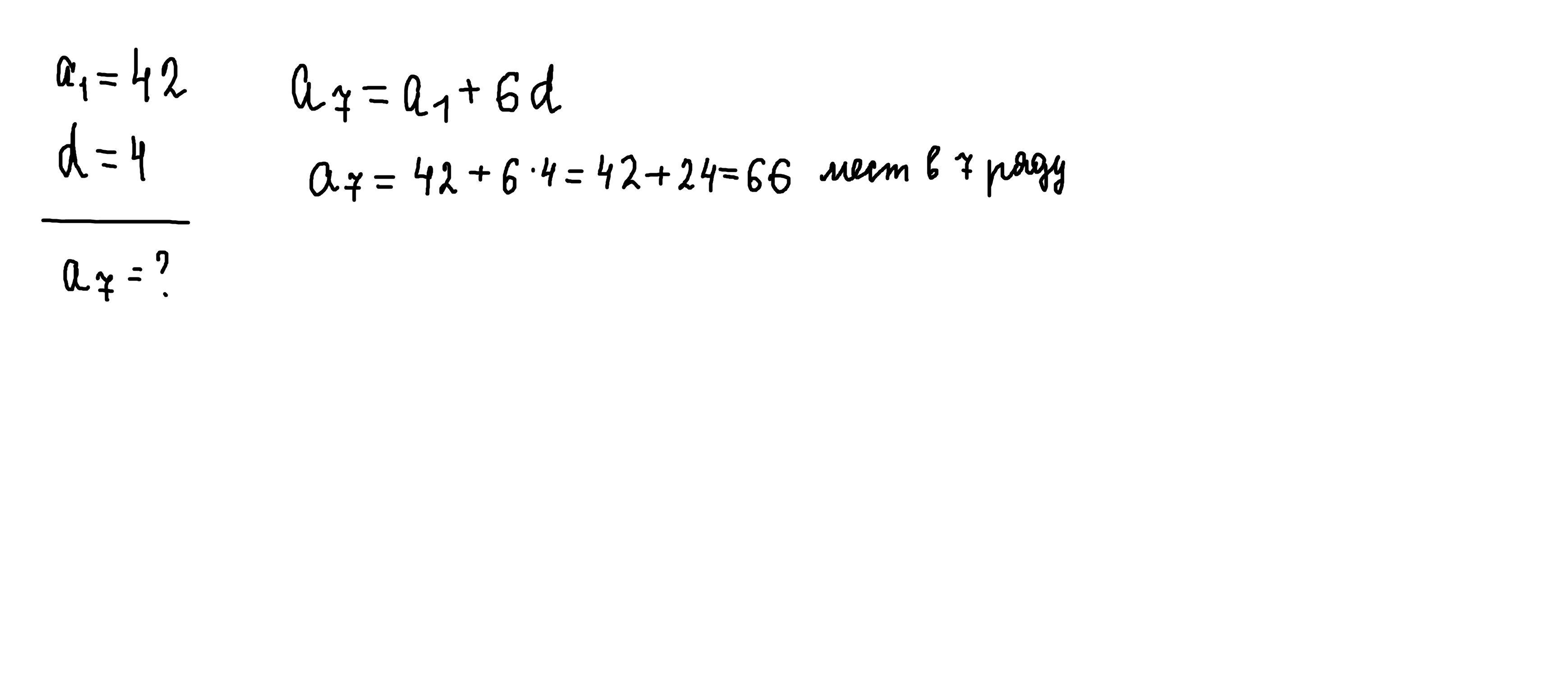 5.В первом ряду кинозала 42 места, а в каждом следующем на 4 больше,чем в предыдущем.Сколько мест в седьмом ряду