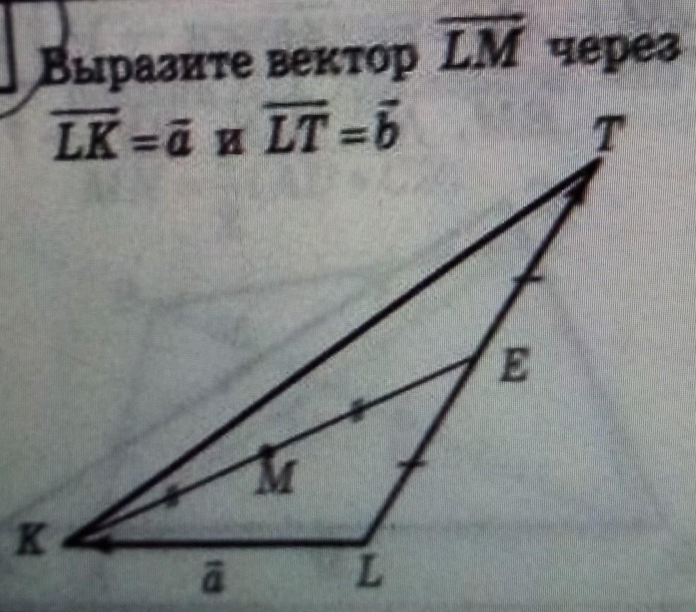 Выразите вектор LM, через вектор LK=вектору a; вектор LT= вектору b