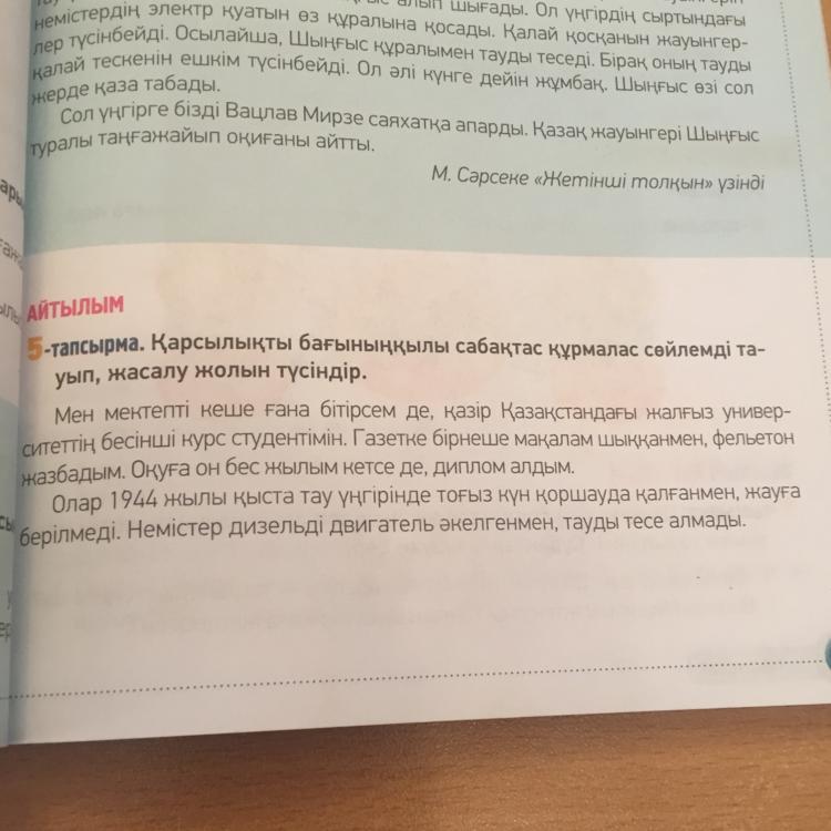 5-тапсырма. Қарсылықты бағыныңқылы сабақтас құрмалас сөйлемді та-