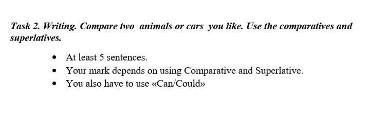 . At least 5 sentences. Your mark depends on using Comparative and Superlative. . You also have to use «Can/Could>>>