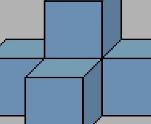 Какова площадь поверхности следующей конструкции из 5 склеенных кубиков? Сторона каждого куба составляет 1 см. Рассматривайте только поверхности, которые не приклеены к другому кубу.