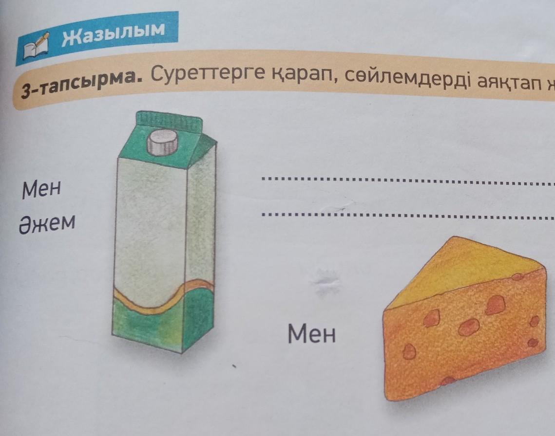 Жазылым 3-тапсырма. Суреттерге қарап, сөйлемдерді аяқтап жаз. Мен Әжем за да Мен LILIM
