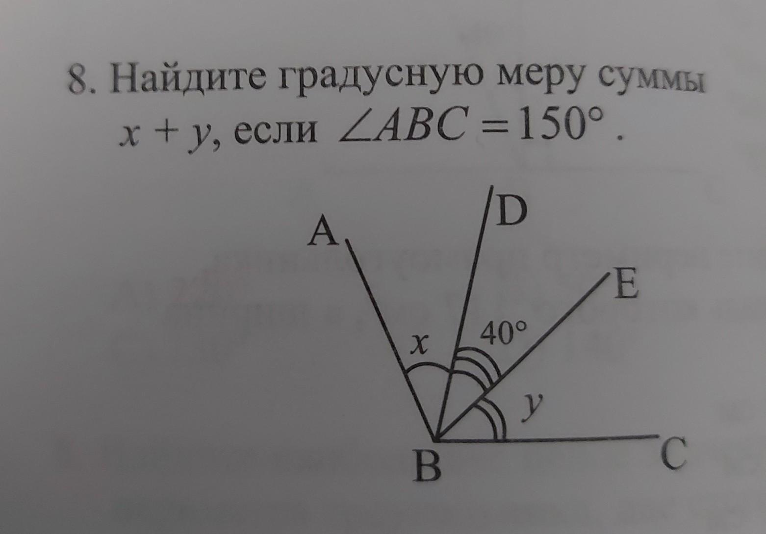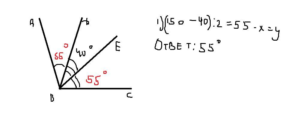 Если угол АВС равен 150 градусов, а угол DBE равен 40 градусов, значит нам нужно: