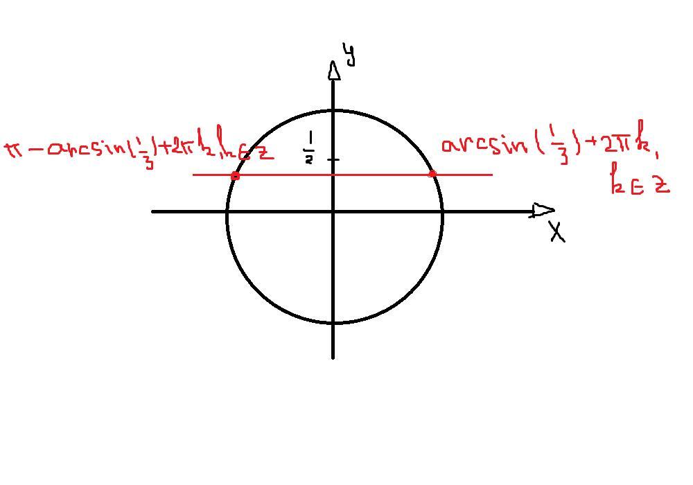 Ответ: x1 = arcsin(1/3)+2πk,k∈Z