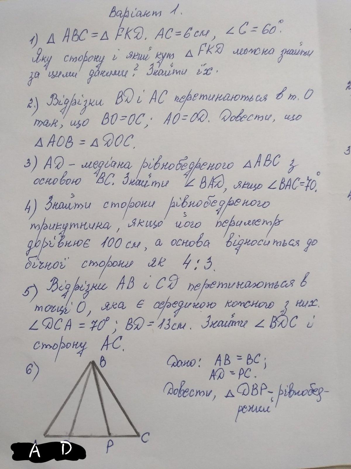 Отже, трикутник АОВ= трикутнику DOC(за 1 ознакою)