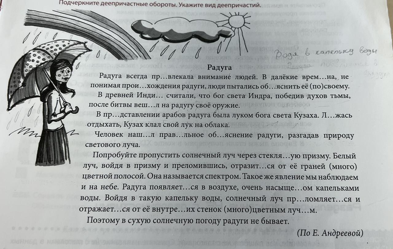 Слова с пропущенными буквами: привлекала, времена, происхождения, объяснить, по-своему, Индии, вешал, представлении, ложась, нашёл, правильное, объяснение, стеклянную, отразится, появляется, насыщенном, преломляется, отражается, внутренних, многоцветным лучом.