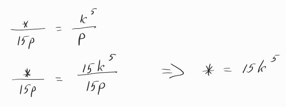 Домножим числитель и знаменатель правой дроби на 15, чтобы в знаменателе было 15р.