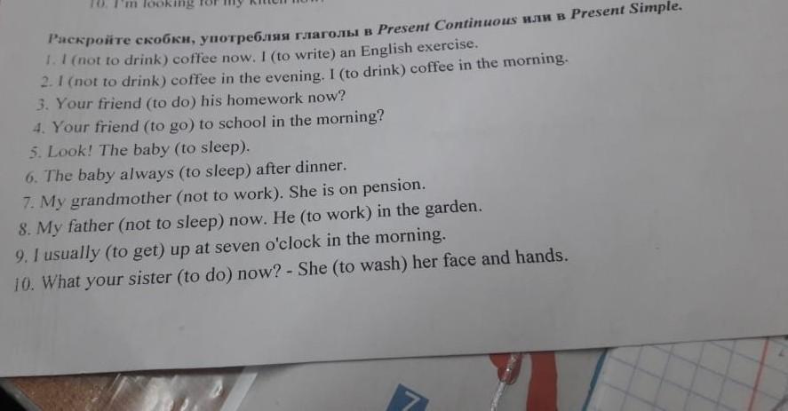 1 I am not drinking coffee now . I am going to write an English now.