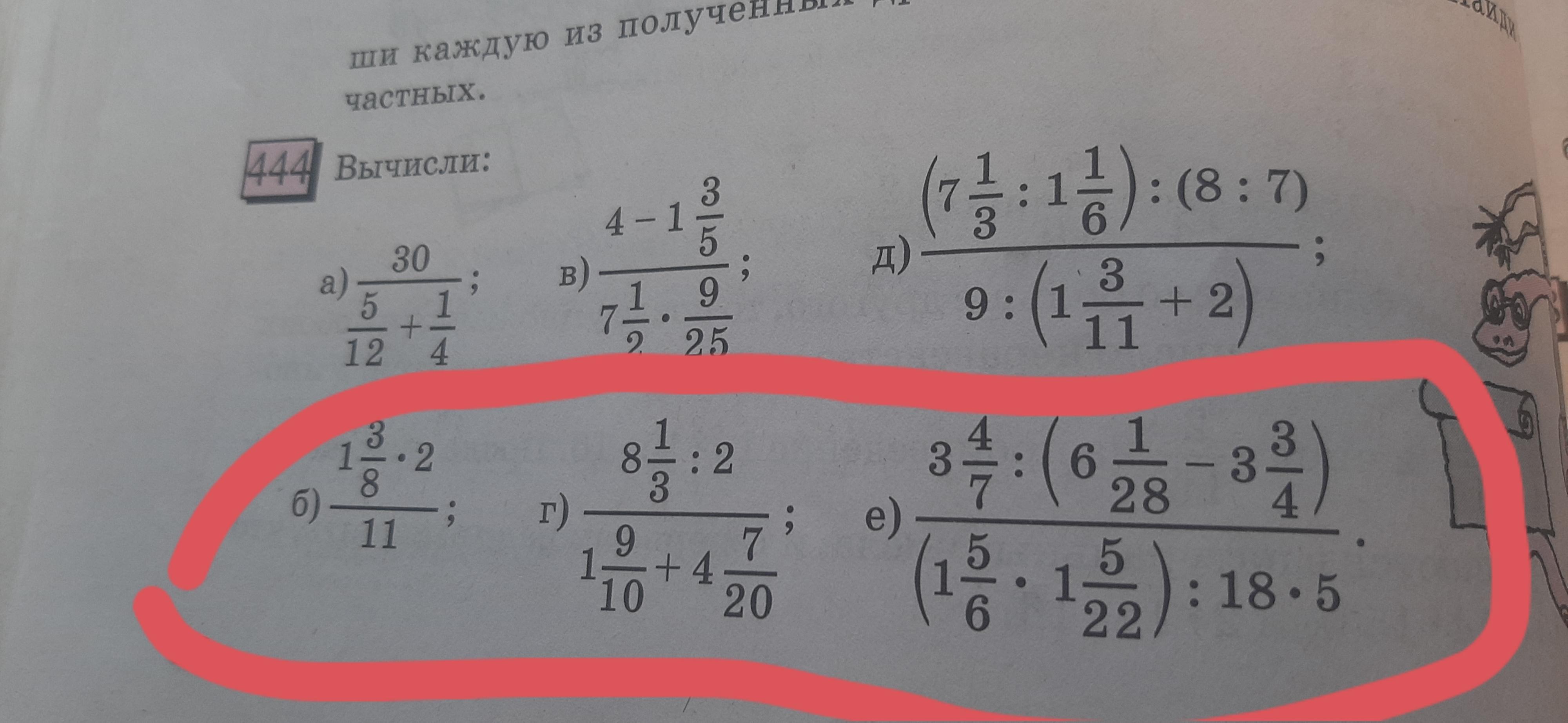 е) (3 4/7÷(6 1/28-3 3/4))/