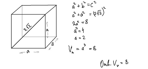 Определите объем вырытой в земле объем конической воронки, образующая которой равна 2 м, а длина окружности 8 м.