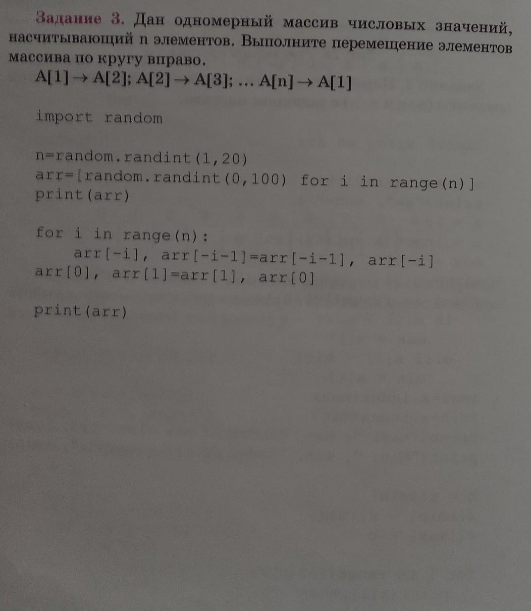 дан одномерный массив числовых значений и насчитывающей n элементов выполните перемещение элементов массива по кругу вправо