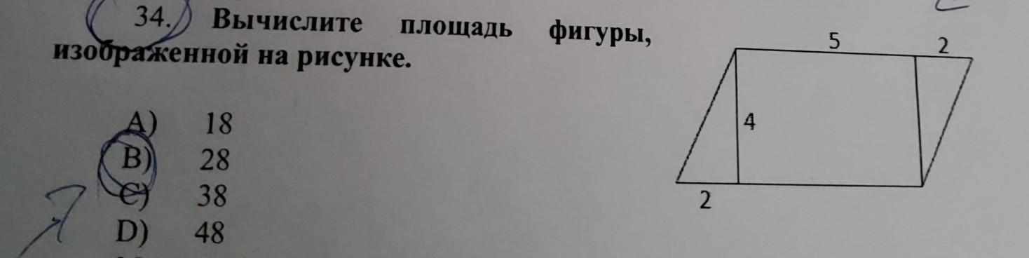Площадь прямоугольника в центре = 4 * 5 = 20