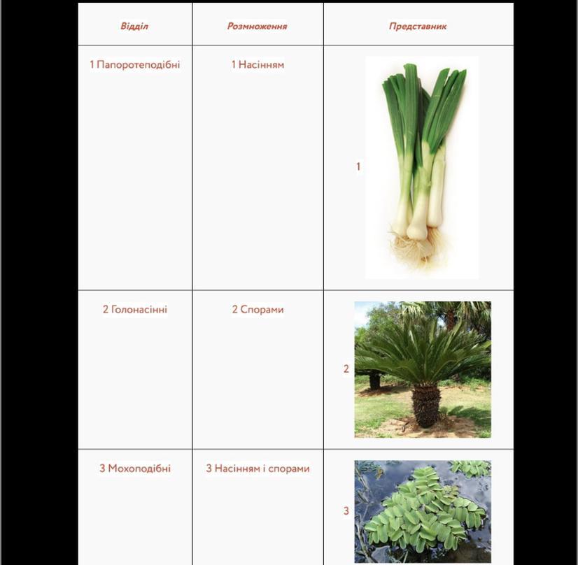 Група рослин, що характеризується листям, які наростають верхівкою. Запліднення відбувається в крапельно-рідкому середовищі. Продовжте опис рослин цієї групи за наведеними характеристиками.
