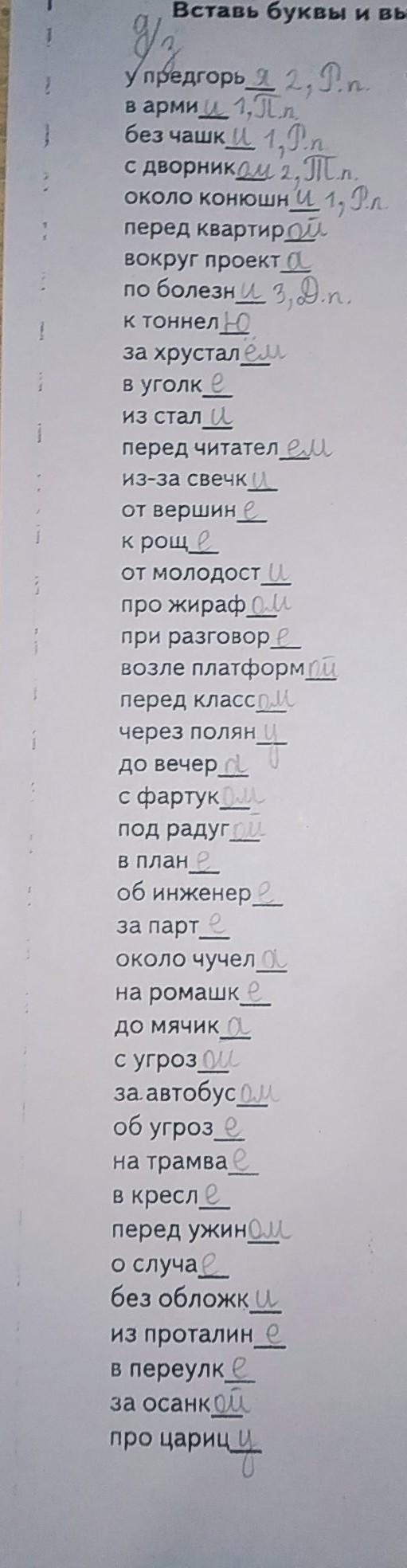 Ответ: У предгорья: Р.п., 2 скл., В армии: П.п., 1 скл., Без чашки:Р.п., 1 скл., с дворником: Т.п., 2 скл., около конюшни: Р.п. 1 скл., перед квартирой: Т.п., 1 скл., вокруг проекта: Р.п., 2 скл., по болезни: Т.п., 1 скл., к тоннелю: Р.п., 2 скл., за хрусталем: Т.п., 2скл., в уголке: П.п., 2 скл., из стали: Р.п., 1 скл., перед читателем: Т.п., 2 скл., из-за свечки: