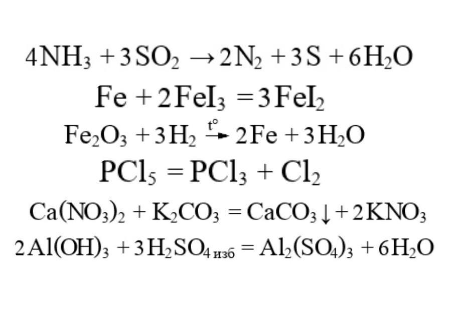 1) Нитрид водорода + оксид серы (IV) → азот + сера + вода