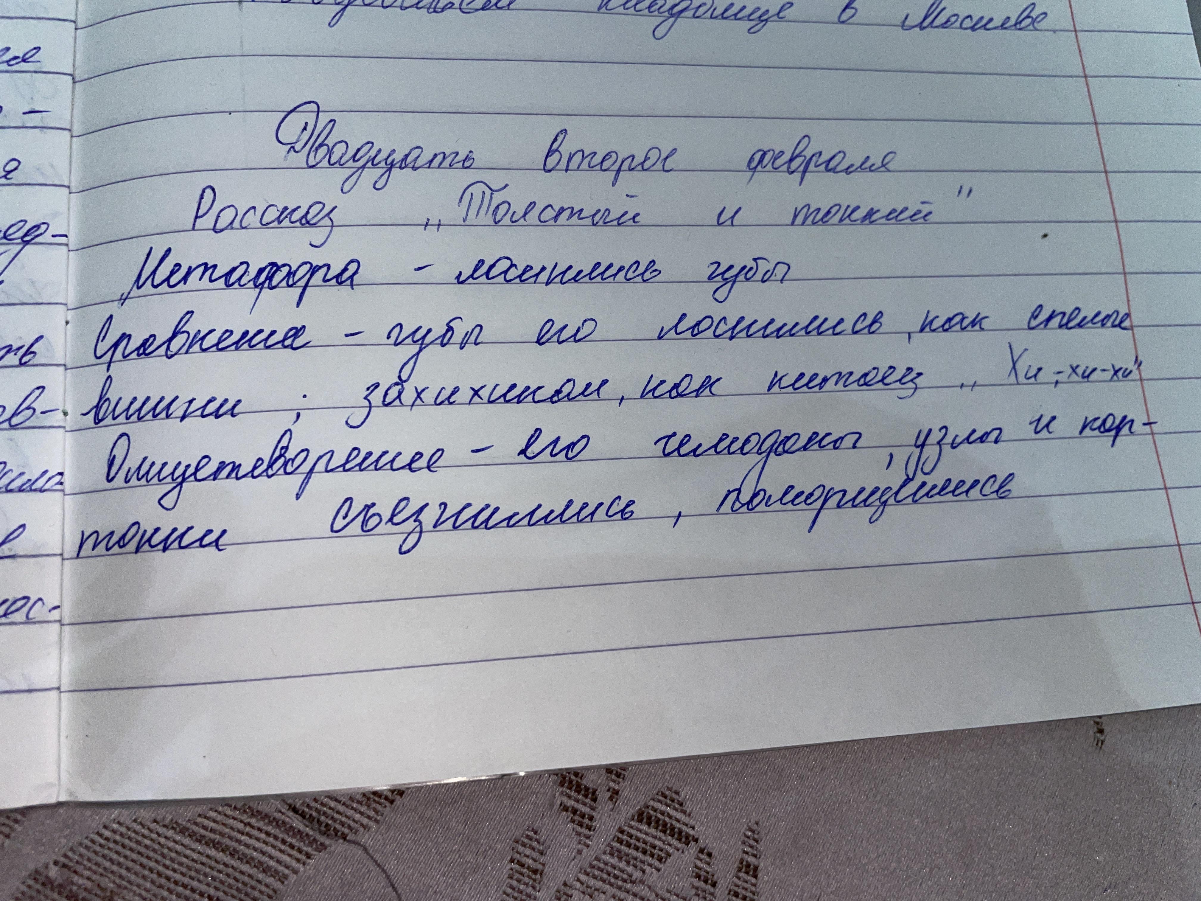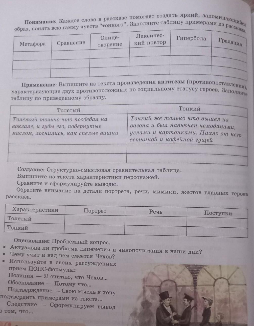 Понимание: Каждое слово в рассказе помогает создать яркий, аапоминающийс образ, понять всю гамму чувсть "тонкого", Заполните таблицу примерами из расскан