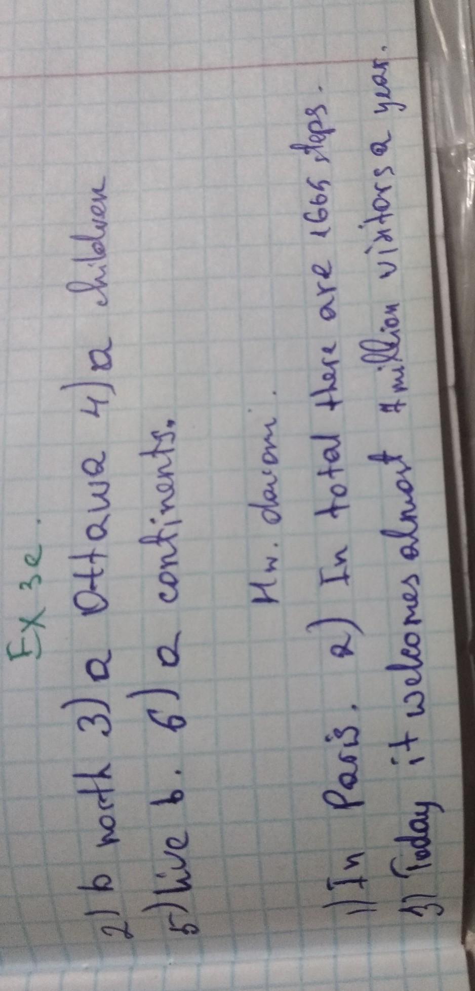 2 Look, listen and answer the questions. f 1) Where is the Eiffel Tower? ) 2) How many steps does the Eiffel Tower have? (4 ? 3) How many people visit it every year? 4) What do children do in ski schools?