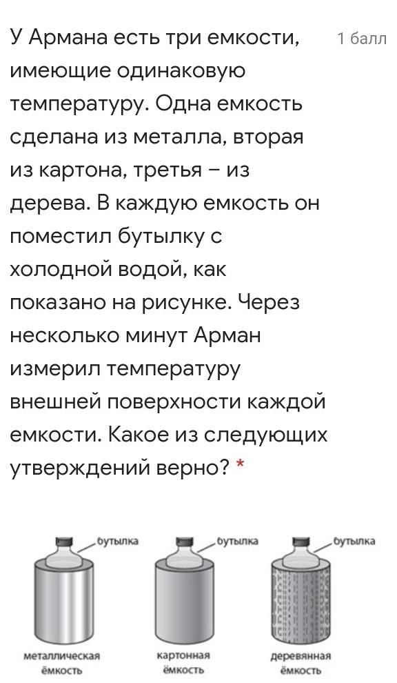 внешняя поверхность всех трех емкостей имеет одинаковую температуру;