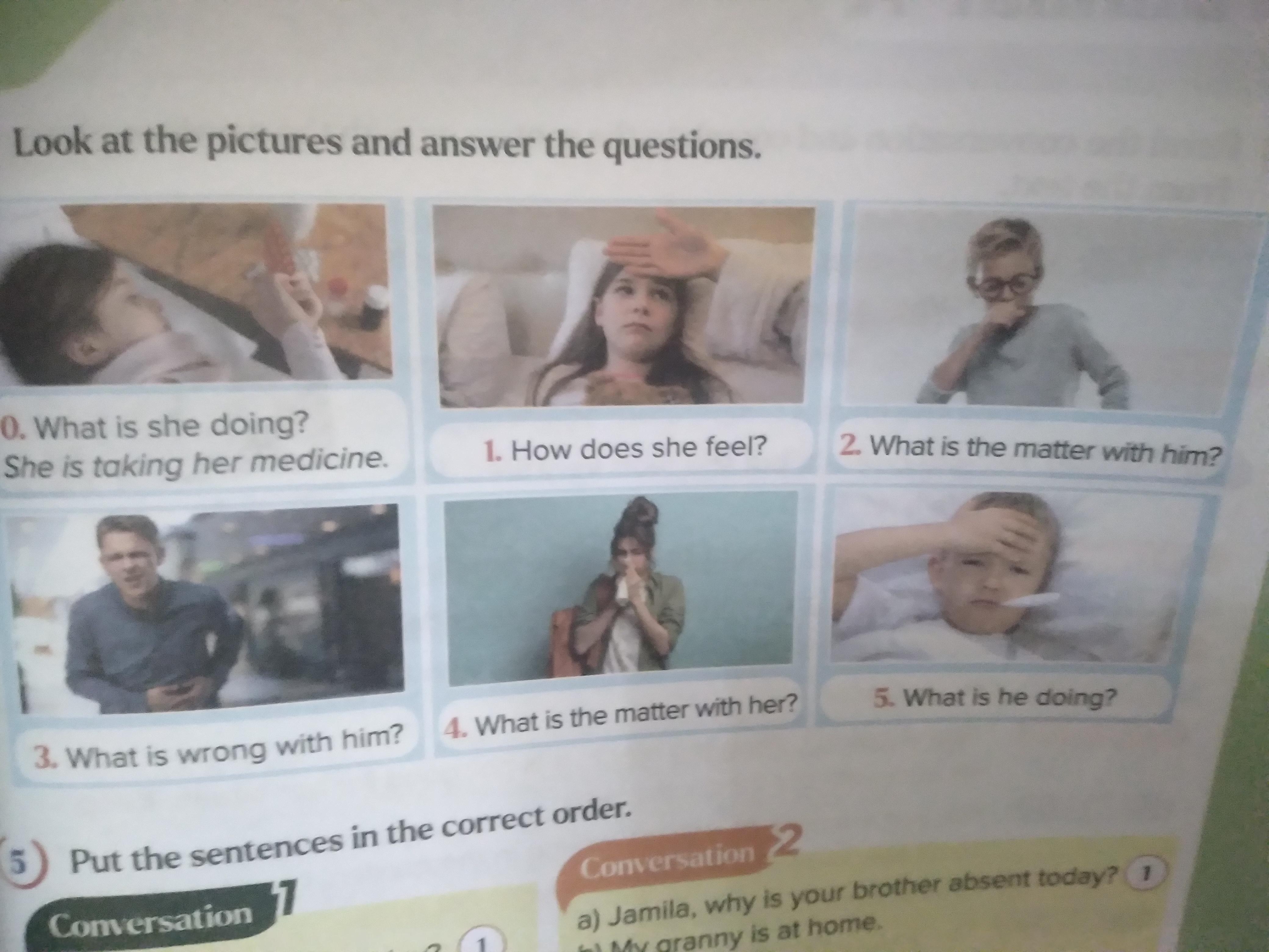 4. What is the matter with her? - She is sneezing or she has a runny nose