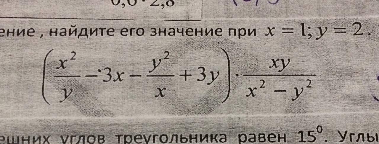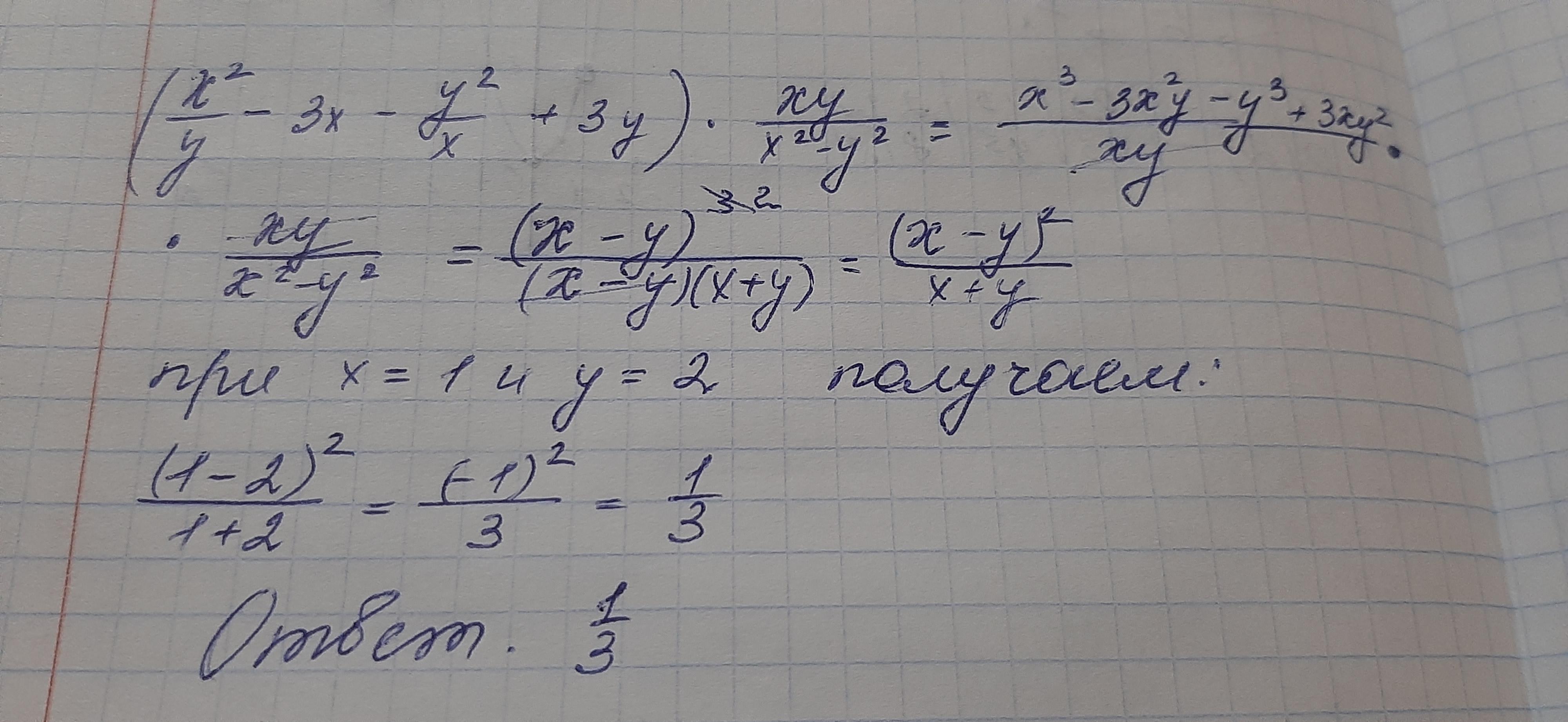 (х²/у-3х-у²/х+3у) ×ху/х²-у² при х=1 ; у=2