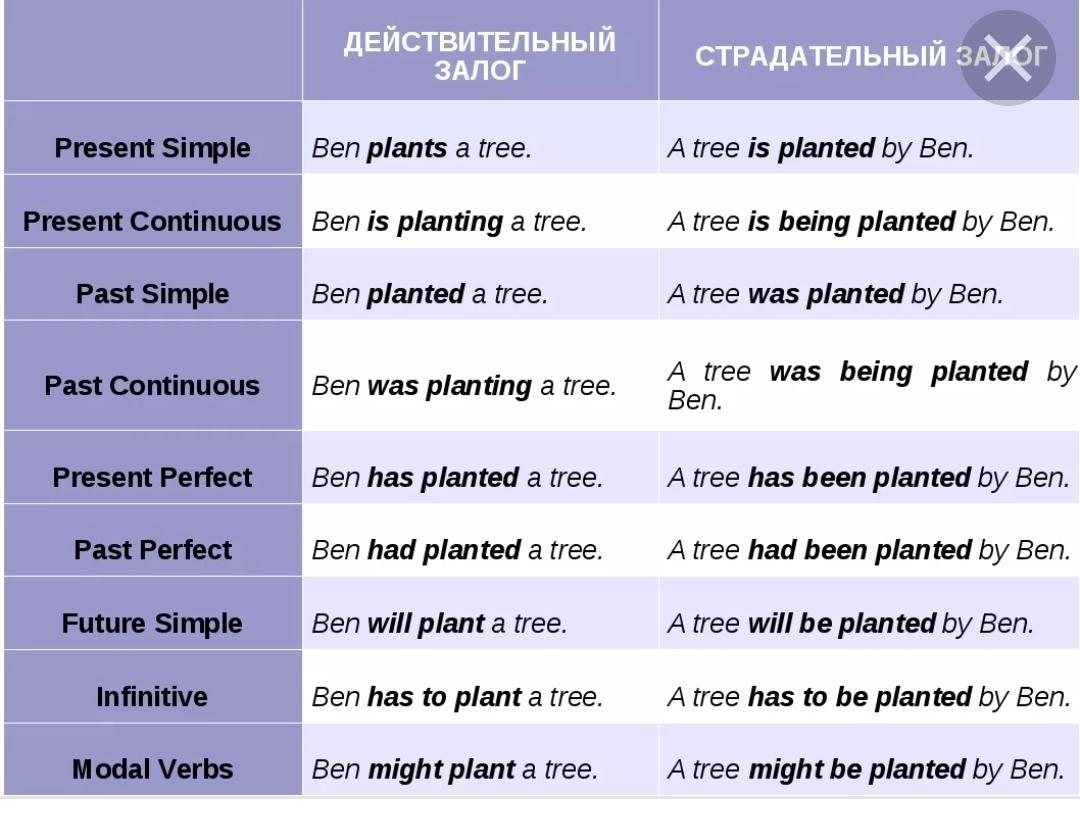 Страдательный залог в английском языке образуется с помощью вспомогательного глагола to be и смыслового глагола в третьей форме. На месте подлежащего в утвердительных предложениях будет стоять человек или предмет, над которым будет производиться действие. Посмотрите на схеме ниже, как активный залог можно преобразовать в пассивный.