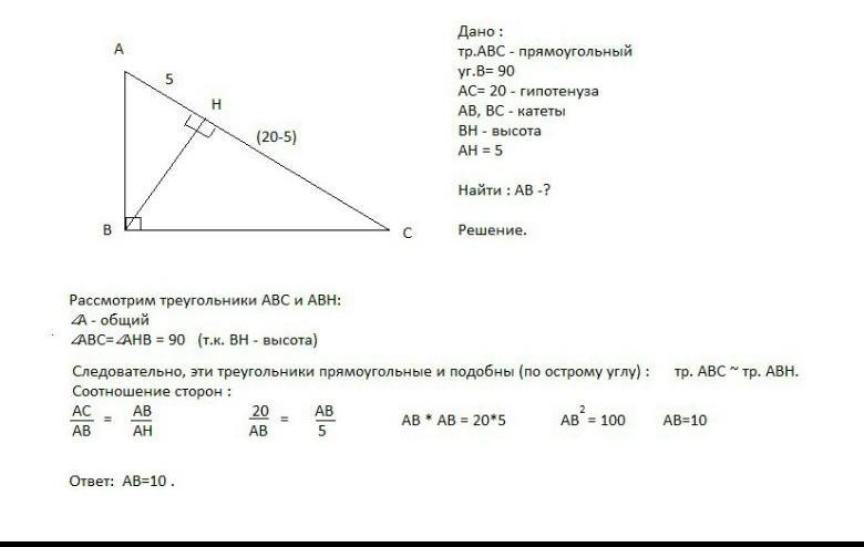 Точка H является основанием высоты, проведенной из вершины прямого угла B треугольника ABC к гипотенузе AC. Найдите высоту BH, катета AB и AC, если AH=3см, а CH=12см.