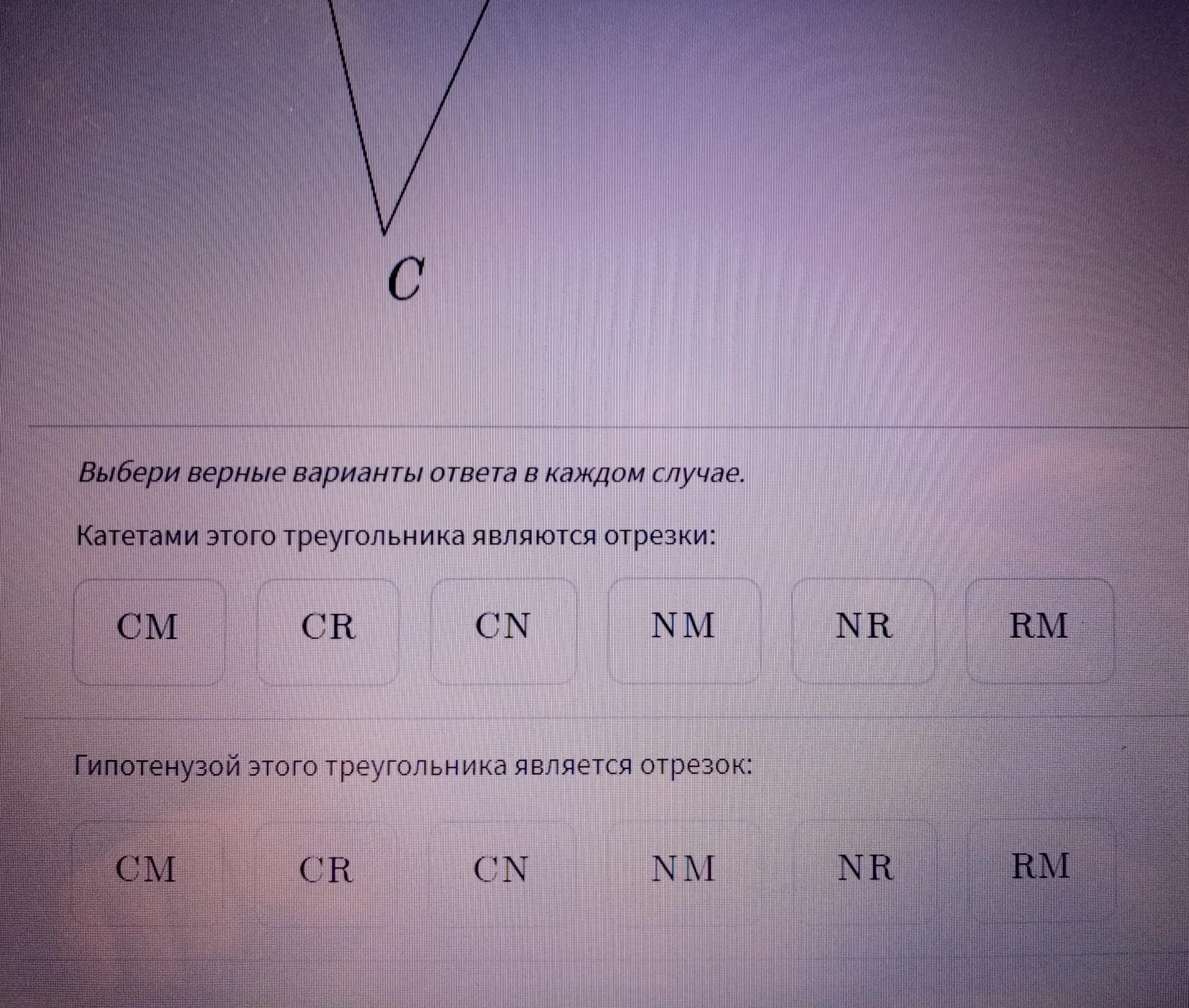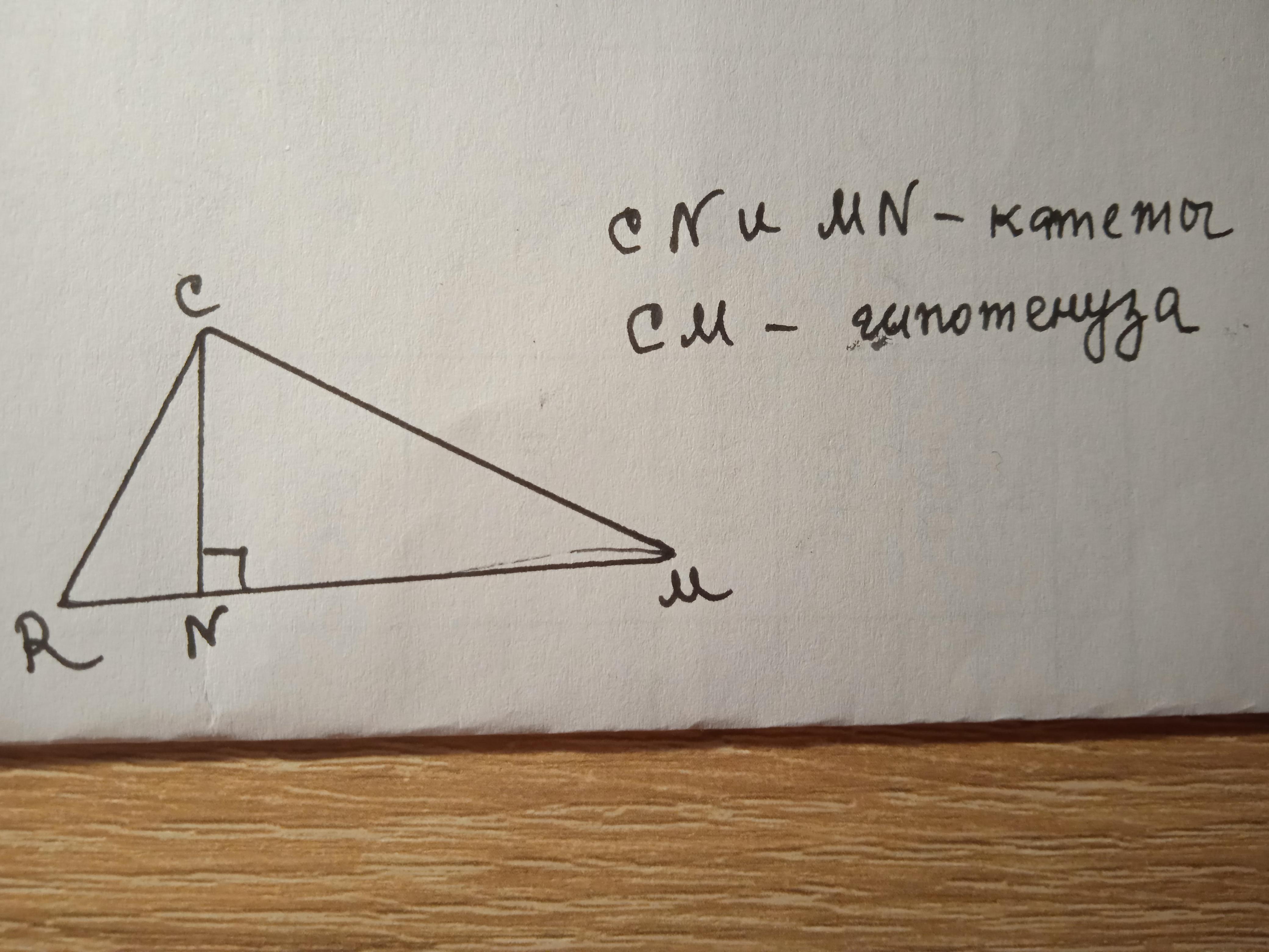 Из вершины С треугольника CRM провели высоту CN. Какие отрезки являются катетами и гипотенузой треугольника CNM?