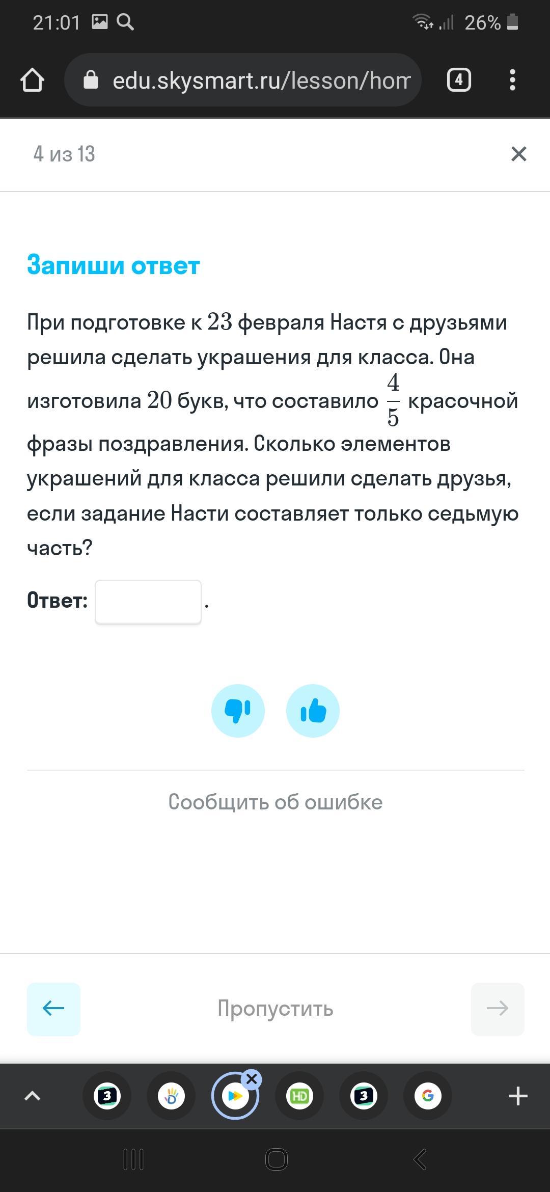 20=4/5, то 5/5=25. Друзья 7/7-1/7=6/7. 25•6=150