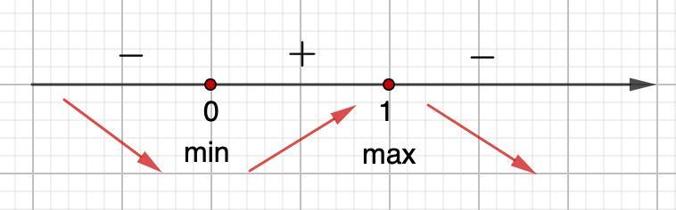 Функция убывает на промежутках (-∞; 0]; [1; +∞)