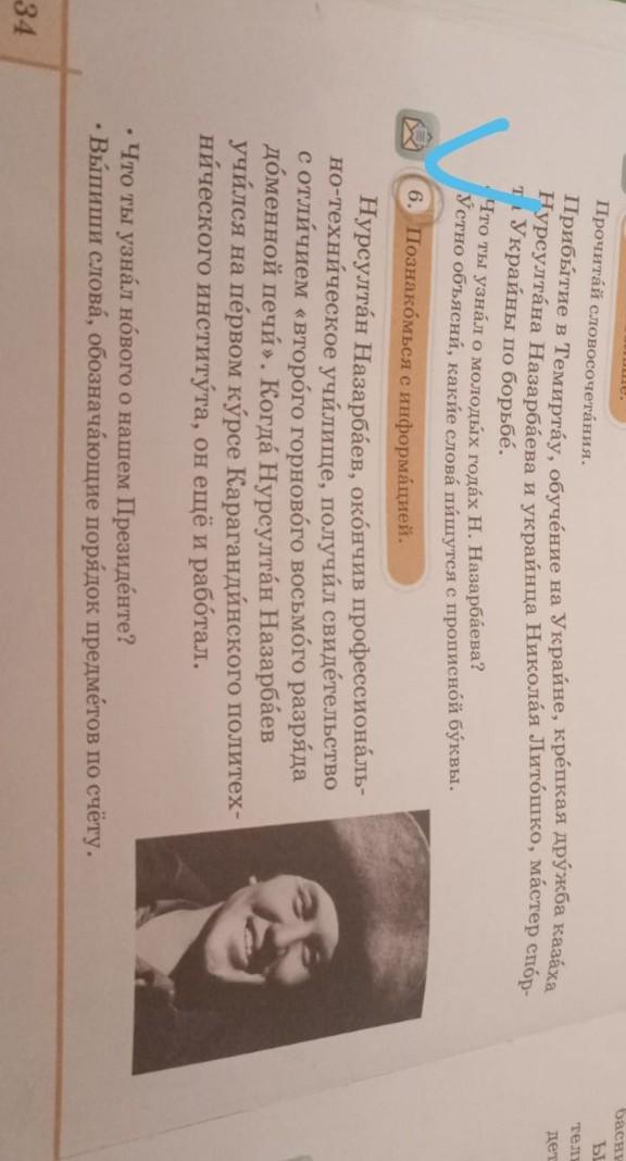 Я узнал(а) что Нурсултан Назарбаев учился в профессинонально-техническое училеще и что он хорошо учился (или знал)