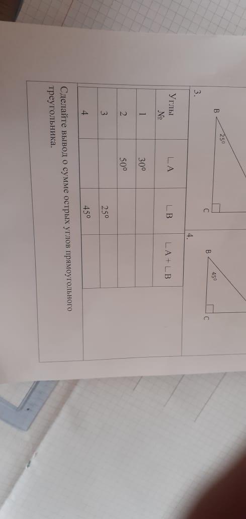 Сделайте вывод о сумме острых углов прямоугольного треугольника ( остальное на картинки) ДАЮ 50 БАЛЛОВ