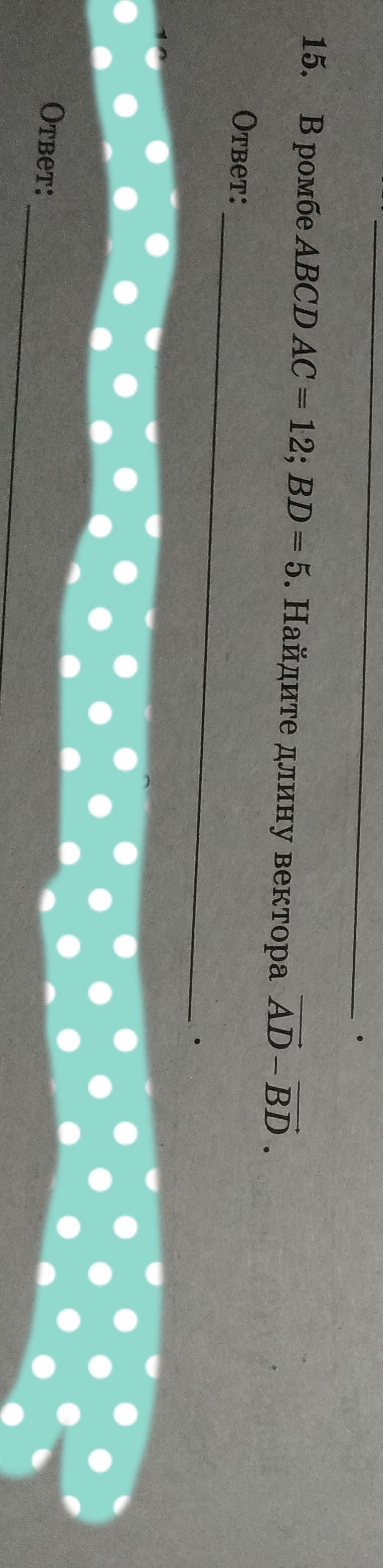 a2=(AC/2)2+(BD/2)2=62+(2,5)^=36+6,25=42,25=6,5