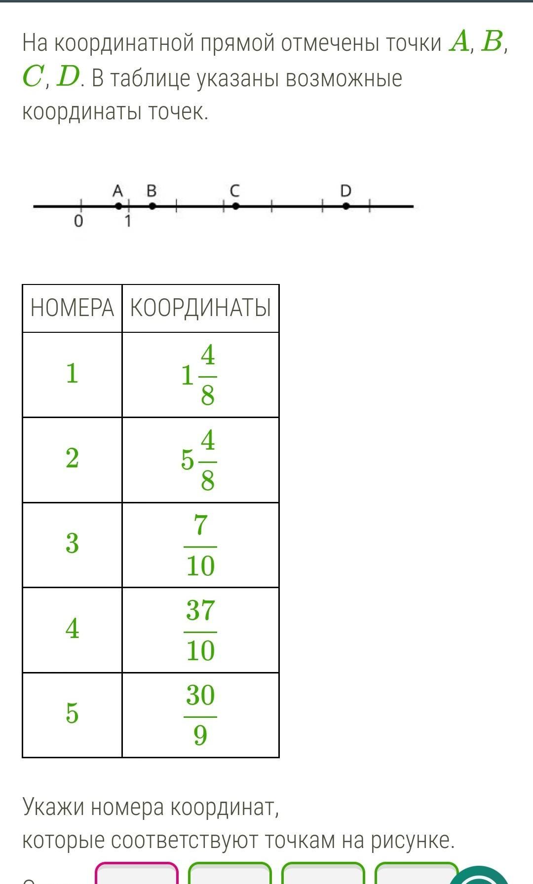 на координатной прямой отмечены точки а в с д в таблице указаны возможные координаты точек.